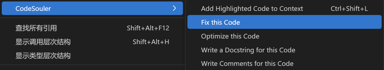 以VSCode为例,目前CodeSouler支持以下几种方法进行代码的修复、优化和重构: